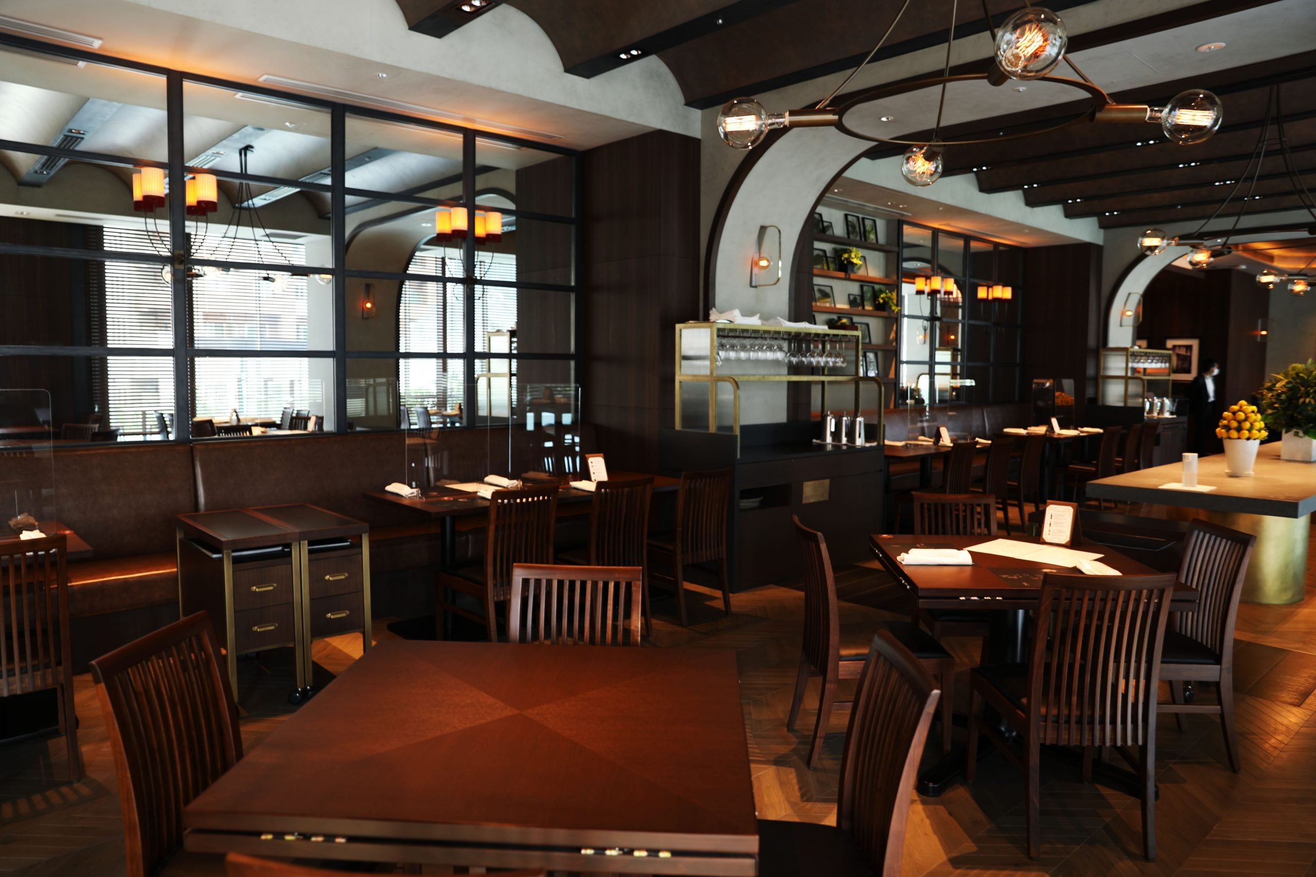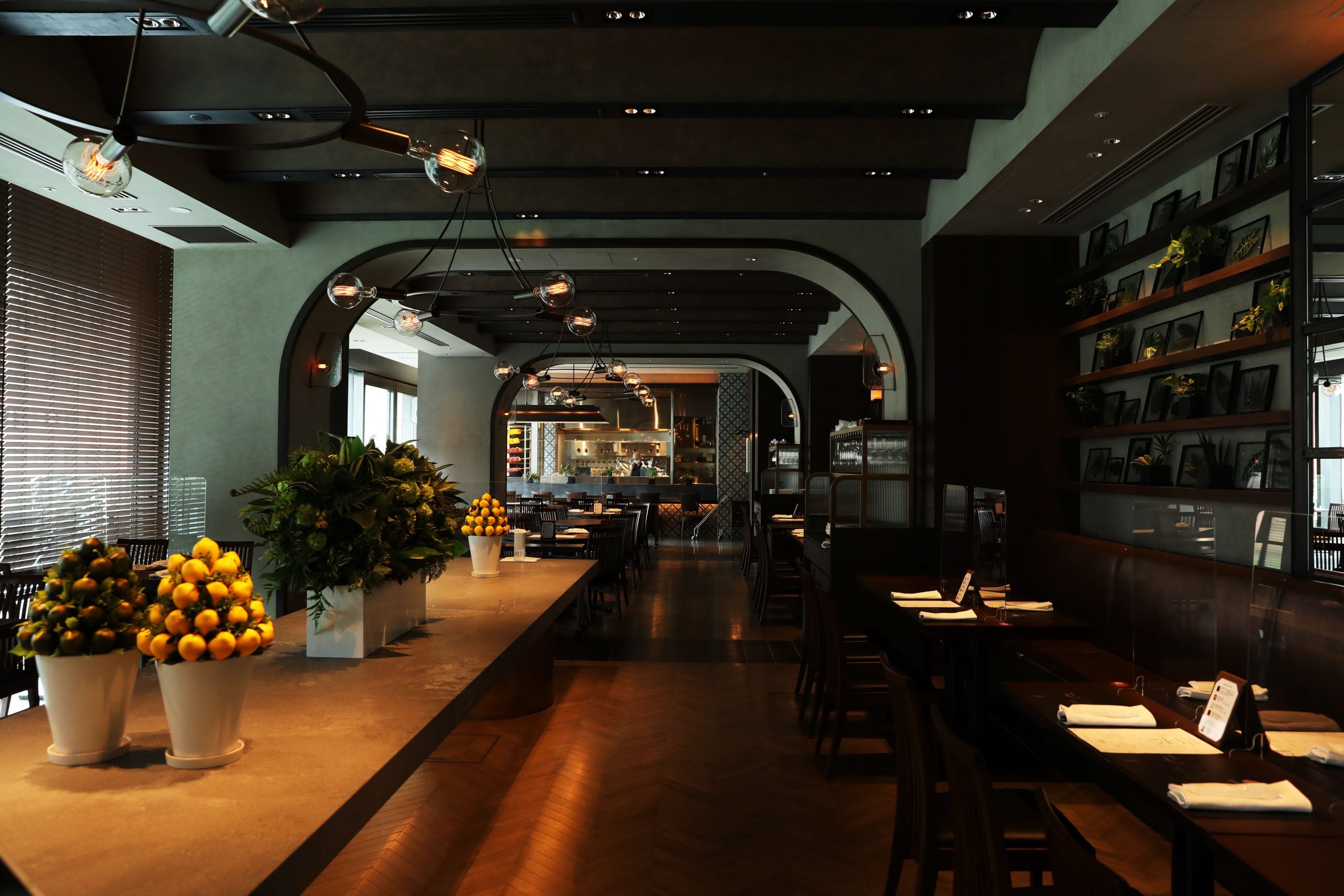 虎ノ門ヒルズ店の店内には、120席のダイニングの他、8席のバーカウンターを設けています。5~8名様までご利用いただける個室もご用意します(特別コースのご利用のみ)。場所は虎ノ門ヒルズ館内にありアクセスも良く、仕事帰りに便利にご利用いただけます。※個室特別コース:ディナー15,000円税込/おひとり様。個室のご予約はオンライン予約または電話予約でも承ります。